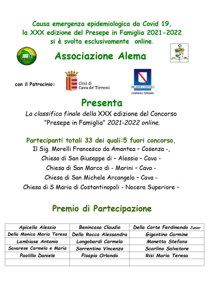XXX EDIZIONE DEL CONCORSO “PRESEPE IN FAMIGLIA” 2021-2022