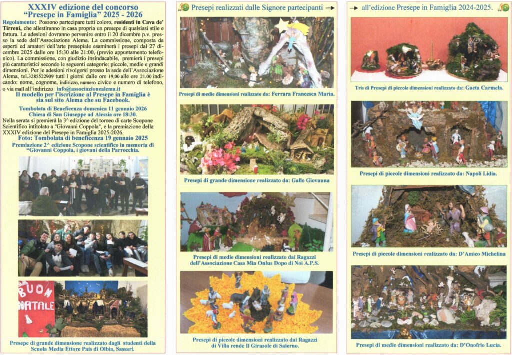 La premiazione del concorso “Presepe in famiglia” avverrà in occasione della “Tombolata di beneficenza” Domenica 11 gennaio 2026 ore 18:30 presso la Chiesa di Alessia.